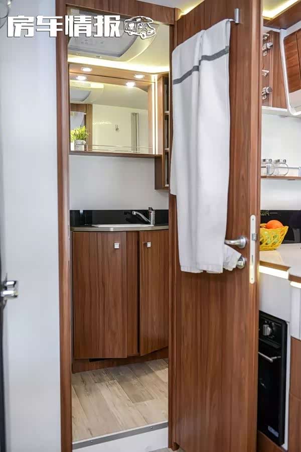 车尾封闭式空间内部实际上是干湿分离的卫生间,近期“房车情报”为大家介绍的国产房车也有采用这种布局形式的,相比较于常见的房车卫生间,这种使用起来更加便利,也更加贴近实际需求。