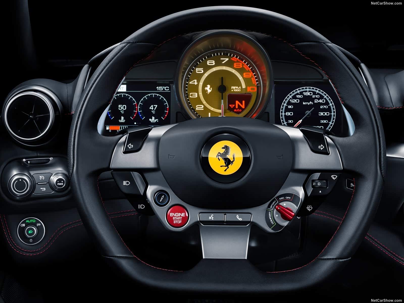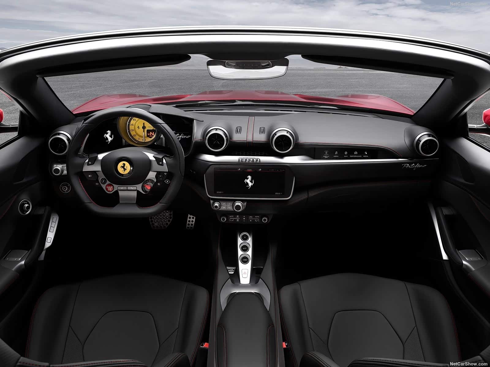 内饰方面,相比其他纯性能取向法拉利,Portofino的内饰更符合敞篷GT车型的风格,豪华感增加,还配备了中控大屏。更有趣的是在副驾位还配备了一块小屏幕,能够显示驾驶数据和多媒体信息。座椅布局采用2+2,后排空间就不要奢求坐人了,这依然是一台属于二人世界的车。