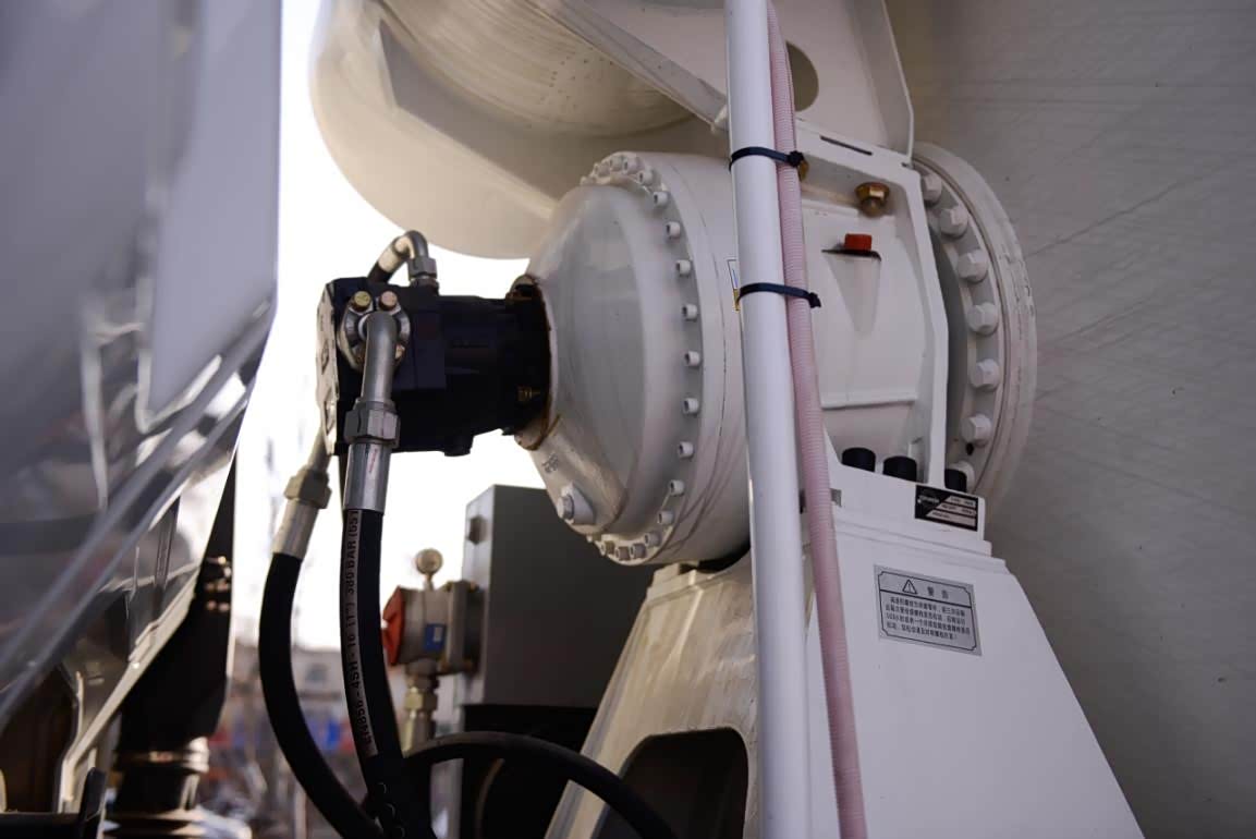发动机取力端口连接着上装的减速机,来实现混凝土罐的滚动。