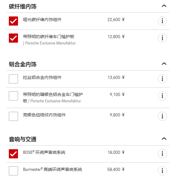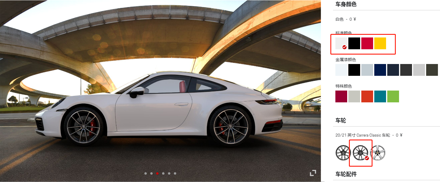 新款911的选配方案还不是很齐全,估计等现款停产,新款全车型都上了之后会逐步完善,到时候你就可以充分定制你的爱车了。