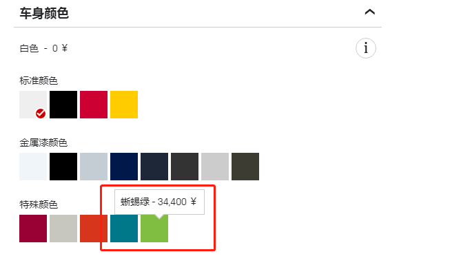 内饰颜色选配变化有两个点:1.现款的黑红真皮和全红真皮都是32800,但新款的黑红真皮比全红贵。2.之前的特殊真皮选项变成现在的致纯真皮内饰,而且为了搭配蜥蜴绿,内饰真皮也增加了龙舌兰绿可选,这个颜色大家可以去看看,我想一般没人会去选择。