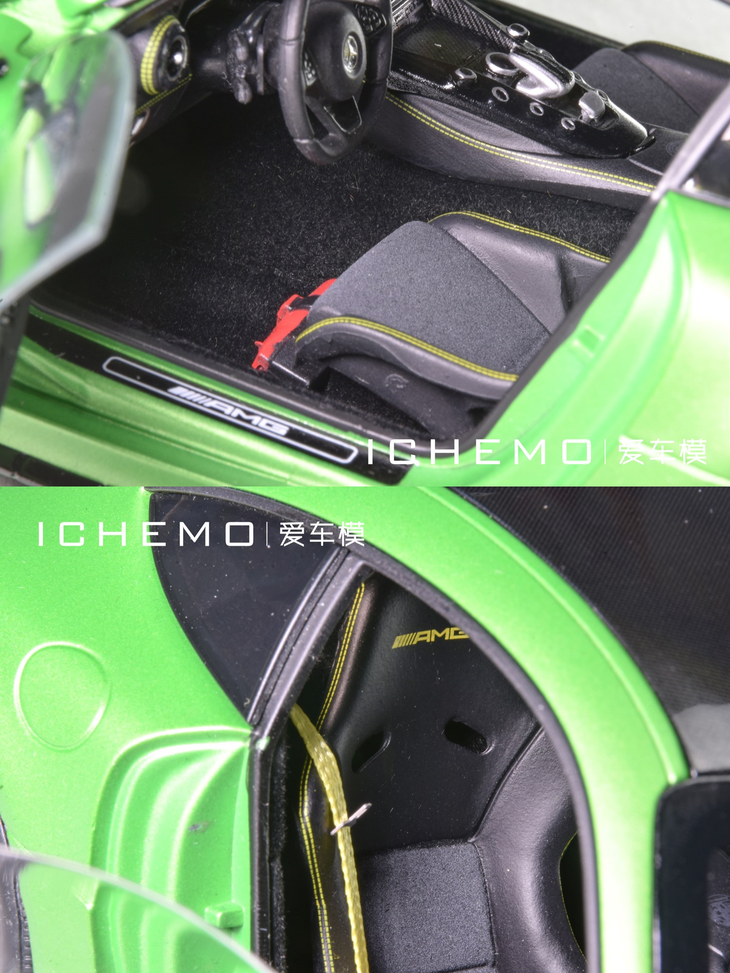 今次开箱的汽车模型来自 Almost Real 似真模型,1:18 比例合金全开工艺。率先上市的有 AMG Green hell magno 哑光魔焰绿和 Iridium Silver 铱银色,官方建议零售价 1180 元/台。(后续还将有 RingTaxi 等诸多配色方案)全车 213 个零件,涂装工序达 1108 道。(数据来自 AR 官方)