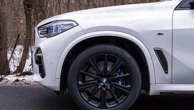 图中这款没有配备空气悬架,但宝马曾对这套空气悬架做出宣传,系统配备主动式防倾杆,整个工作原理与宾利添越上的那套空气悬架差不多。运动模式下,即便没有空气悬架,车身姿态也能保持完美,行驶起来不像是一款SUV,更像是一款加高了的旅行车。图中这款选装了四轮转向,所以在操控方面更为灵活。