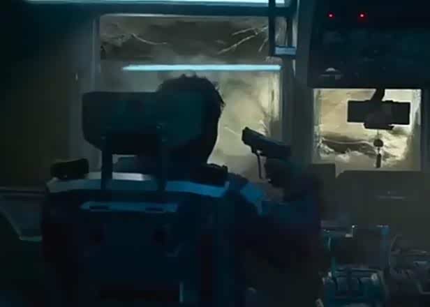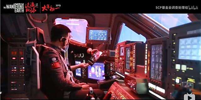图注:由吴京扮演的航天员刘培强正在驾驶“领航员”号核心舱,可以看到其操作界面很类似当前的大型军用飞机驾驶舱(图源:《流浪地球》预告片截图)