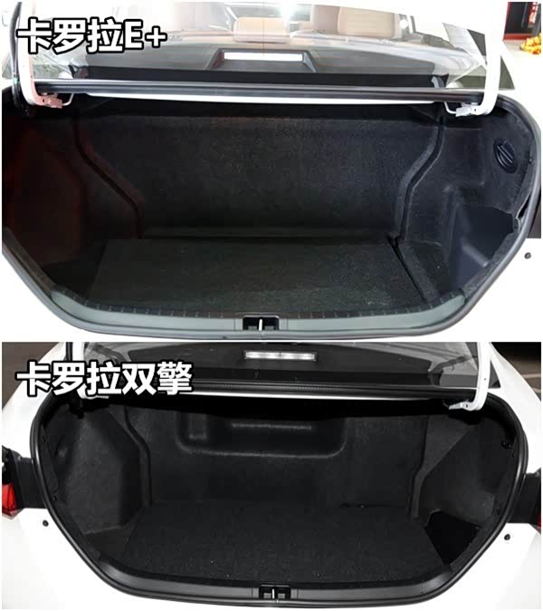 空间部分,卡罗拉E+与卡罗拉双擎的参数基本大同小异,但带了电池组的E+在高度上反而低了15mm比较神奇,但这些都是无关坐乘感受的细微差别了。