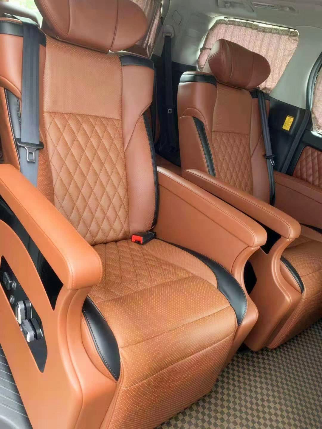 三排的座椅同样进行了软皮包覆,主要是增加乘坐舒适性和颜色统一,二排才是重点,埃尔法原车的舒适度是相当出名的,所谓的航空座椅也是根据埃尔法的原车座椅发展而来的,那么在舒适性能有多大的不同呢?