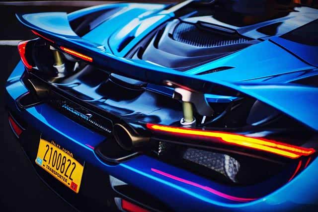 拍摄这台720S Spider似乎并不需要什么特别的美景,仅仅是乡间公路旁幽静的停车场,就足以衬托出它别具一格的气质。流光溢彩的车身,与粗犷而具备超高空气动力学性能的尾部构造,在幽蓝色的身影中碰撞出别样的火花,大量的碳纤维部件与镂空的导流通道,共同诉说着这副躯壳之中潜藏的惊人潜能。