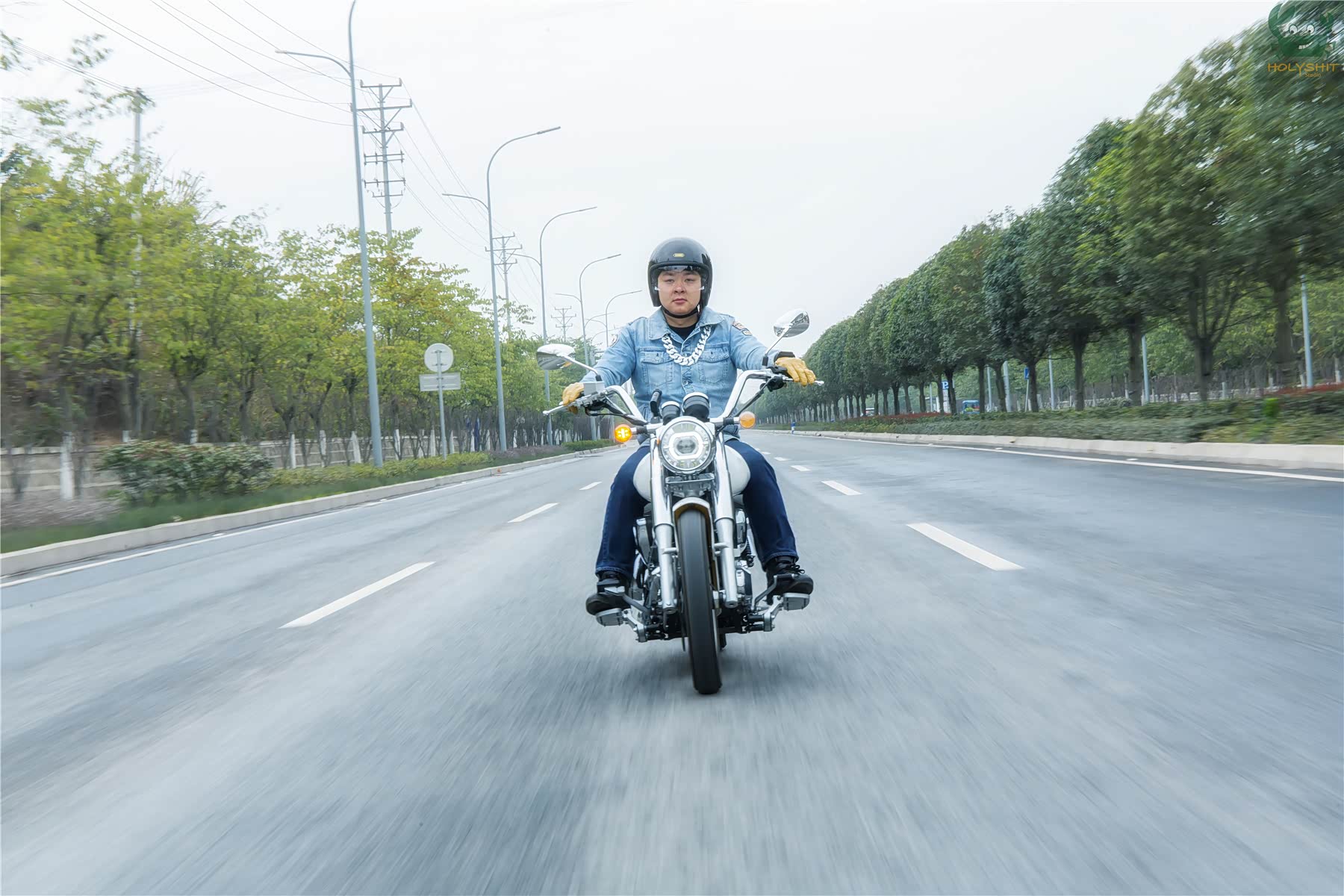 上身向后微仰,双腿放置于身前,双手舒展的握住车把让整个上半身都成为迎风面。如果你骑惯了复古车或者街车,那么当你第一次骑上力帆V16的时候一定会因这样舒服的骑姿而感到不习惯。但是不出几分钟你一定会慢慢适应这种慵懒、潇洒的状态并爱上骑在V16上的感觉。