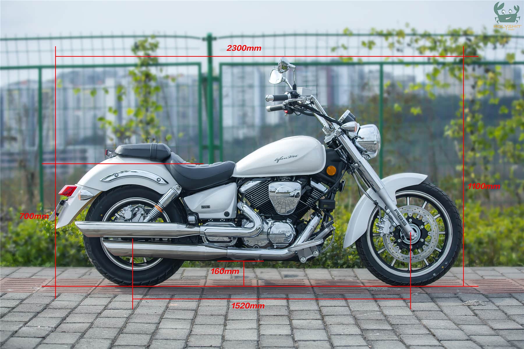 车身尺寸为:长2300mm,宽1000mm,高1100mm,轴距1520mm,座高700mm,最小离地间隙160mm。与同等排量的其他车型相比尺寸更大,提升了行驶中的稳定性。