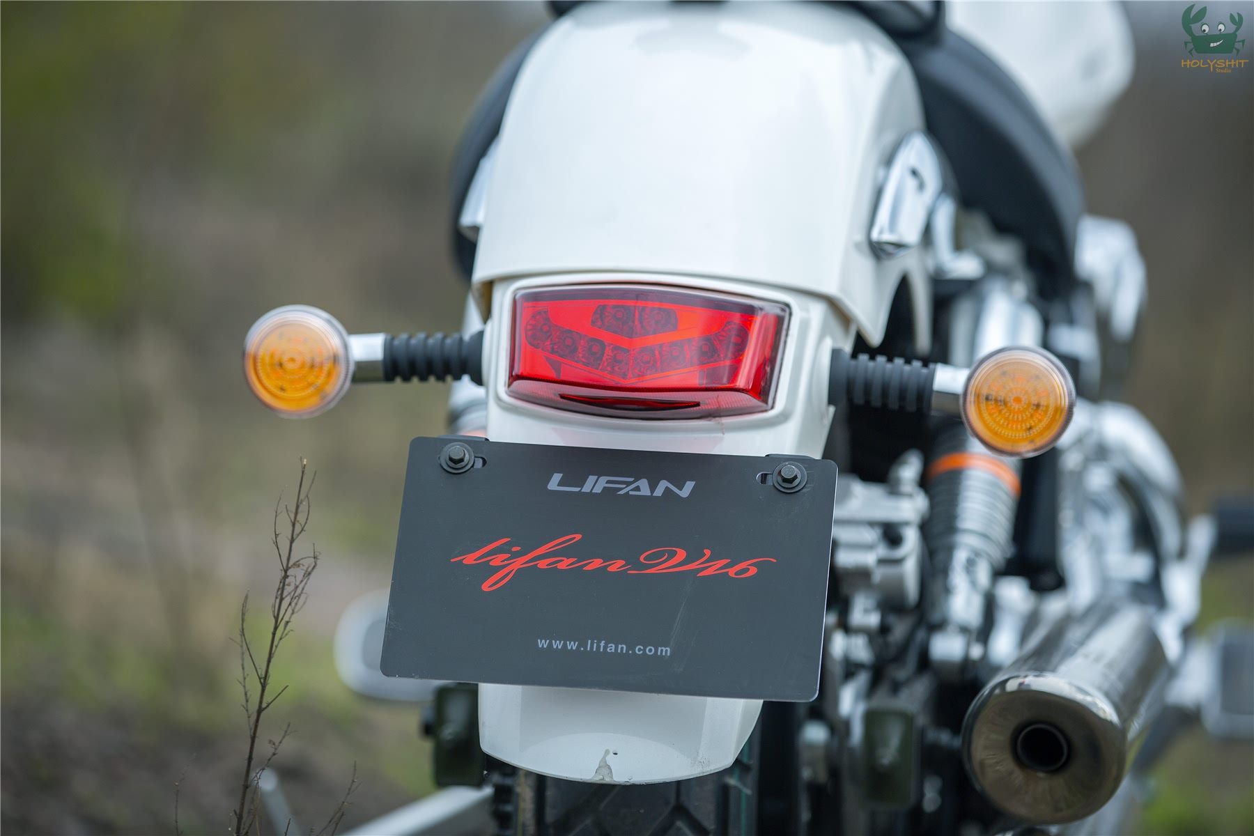 宽阔的后挡泥板美式范儿十足,“V”字形尾灯也强调了力帆V16的产品特征。