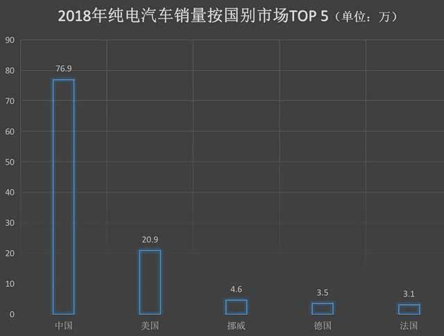 2018年,全球纯电动车销量最多的国家是中国,全年销量76.9万台,第二位是20.9万台的美国,第三位的挪威则只有4.6万台;第四位和第五位的德国和法国则只有3.5万台和3.1万台。其实通过销量是可以看到各个国家对于纯电动车的一个态度,比如中国对于纯电动车汽车的政策推动是非常巨大的,而美国因为特斯拉的存在,以一己之力就支撑起了半壁江山,而欧洲国家因为本身市场增量有限的关系,纯电动车的发展相对还是比较保守,主要归结于一点,欧美国家对于纯电动车的政策推动显然没有中国这般激进。