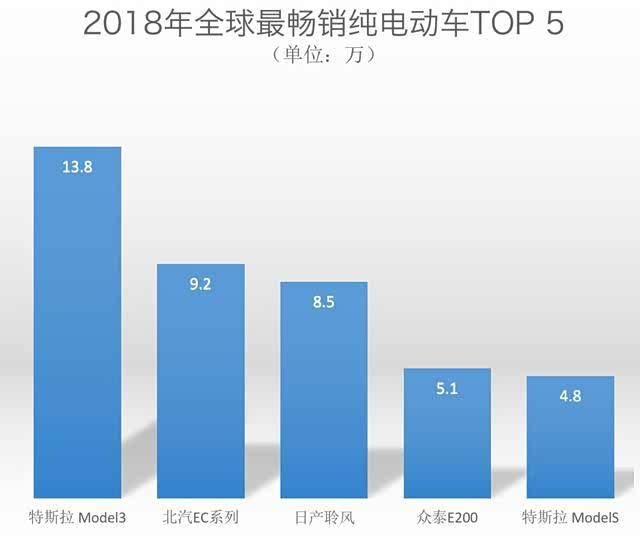 当然来自中国的比亚迪也进入了前五位,以9.5万辆的成绩位居第三,目前比亚迪在中国纯电动市场的整体表现一般,但是在混合动力车型方面的表现比较优秀。第四位和第五位分别是来日产和众泰,值得一提的是众泰汽车的纯电动车以小型车为主,目前在三四线城市铺货居多。