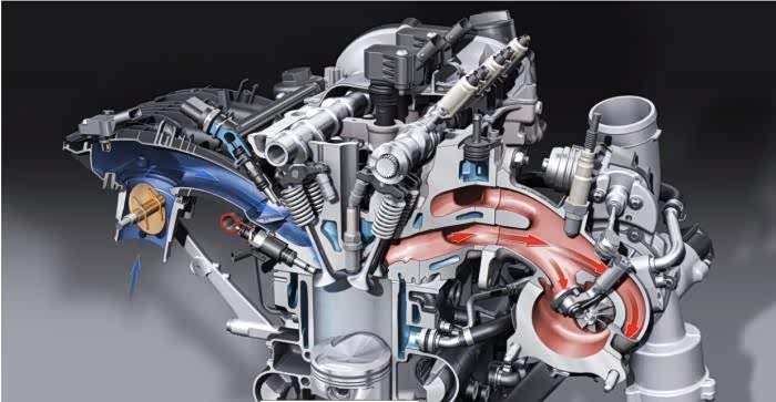 这个理解起来其实相对比较简单,就是冷却泵将冷却液从冷却器中输送到增压涡轮中,对涡轮增压系统进行冷却,目前在很多品牌发动机中也都有采用这个技术。