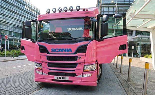 霸气的大卡车,却是粉红配色,你让一个大男人怎么开呀?在我们眼前是一辆斯堪尼亚P280卡车,其实确切来说应该是一辆粉红颜色的斯堪尼亚P280卡车。卡车这种大型汽车,一般与时尚可爱搭不上关系,但将车头彻底改为粉红后,竟然出人意料的好看。