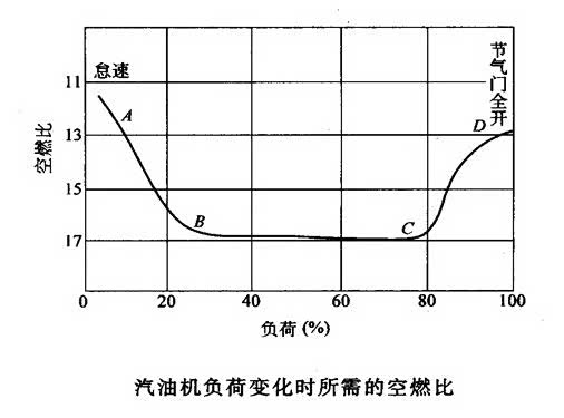 那么可燃混合气又是如何适应发动机不同工况的需求呢?在这里向大家引入一个概念:空燃比(或者过量空气系数)。我们通常使用它来表示可燃混合气的浓度。所谓的空燃比就是可燃混合气中空气质量与燃油质量之比;所谓的过量空气系数就是指燃烧1kg燃油实际供给的空气质量与完全燃烧1kg燃油的化学计量空气质量之比。在实践中空燃比比较直观,应用的较多。标准状态下,燃烧一克汽油需要14.7克的空气,即空燃比为14.7:1,在这个比例下,汽油和空气正好能完全燃烧殆尽,生成二氧化碳和水,既不会有浪费,尾气也更环保,称为标准可燃混合气,燃油供给系统的工作目标就是尽可能的把空燃比控制在这个比例。如果低于这个数值称为浓混合气,高于这个数值称为稀混合气,都不是理想的环保混合气。