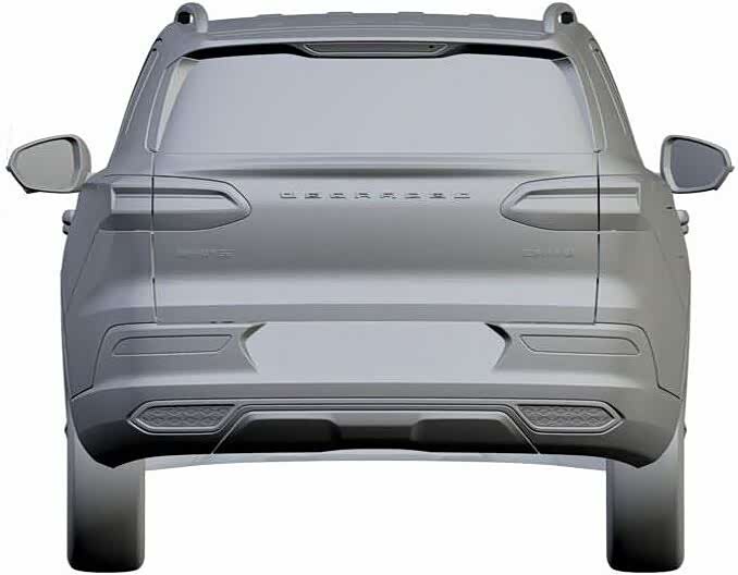 而侧面才是重点,也与福特锐界的轮廓很接近,腰线则采用了双线条设计,前端从前大灯侧边开始一抹至后门中段结束,同时从起下方重新开始设计出另一条腰线,由此形成一种前冲式的运动效果,此外特别需要注意的就是后门车窗玻璃非常宽大,说明整车轴距不小,目测最少是在2.75米上下,而C柱到D柱之间非常宽大,很明显是三排座的设定,也就是说整车尺寸也是接近锐界那种,同时注意车顶的全景天窗尺寸规格,也是采光面积巨大,从一个侧面印证了整车尺寸的大小,为何命名为猎豹CS5?到现在笔者还处于懵圈状态,不排除两个可能性,一个就是申报的命名是掩护性质的,让你无法推测真实命名,还有一个可能就是猎豹的命名规格本身是根据平台来定位的,可能猎豹CS10、CS9是四轮独立平台,而此次现身的CS5后悬不排除是扭力梁版本的,目的当然是为了最大化的拓展车内空间,反正这命名让人如坠迷雾。