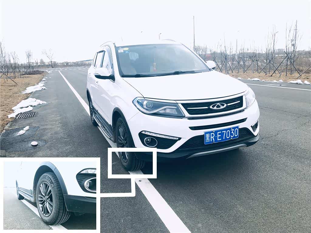 观察左车头前角对应的位置,从车内司机的视角看过去图中方框内标记的位置就是对应的左侧车轮的位置,也就是左车头和白线重合的位置。