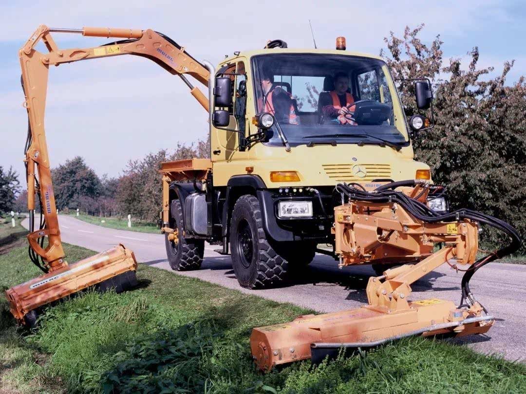 跟着时代变革的步伐,60年后的乌尼莫克还是不可避免地归隐城市,将农用车的功能还给了属于这个时代的拖拉机,要不约翰迪尔那帮人早就没饭吃了。当然玩笑归玩笑,现在欧洲人虽然依旧用乌尼莫克播种收割,但更多的细分车型让它的功能更加强大,实际上也可以理解为一辆乌尼莫克再加上无数拓展工具,这也使得它的身份不确定,它可以是法兰克福机场里的除雪车,也可以是铁道线上的牵引车,更可能是市政局的路灯维修车,总之你能想到的变型车通过拓展它都能实现,这是2000年面世的U300-500系列的特色。