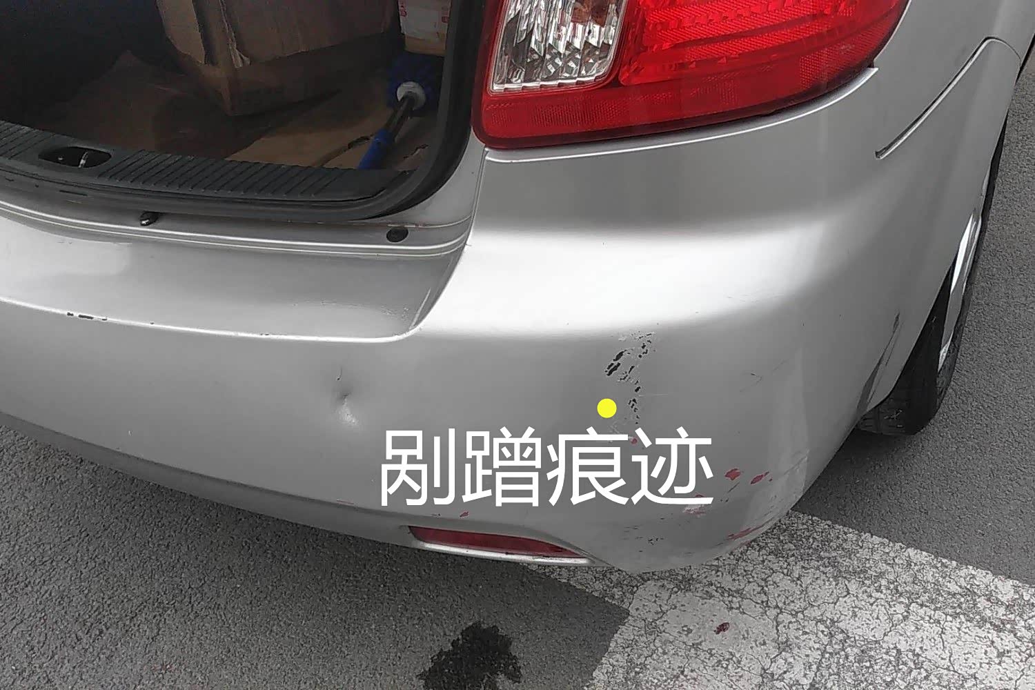 右后侧有剐蹭痕迹并且已经漏出底漆,修复一般都是更换,换后杠大概在100-200左右。
