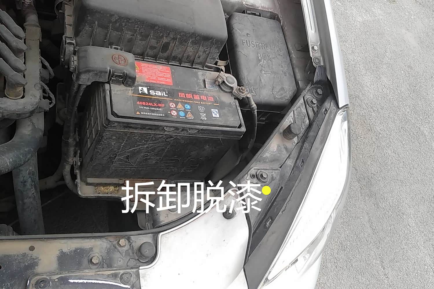 打开机盖后发现发动机的油迹明显,不过没有零部件更换的迹象,还算不错吧,毕竟老车本身造价就低。