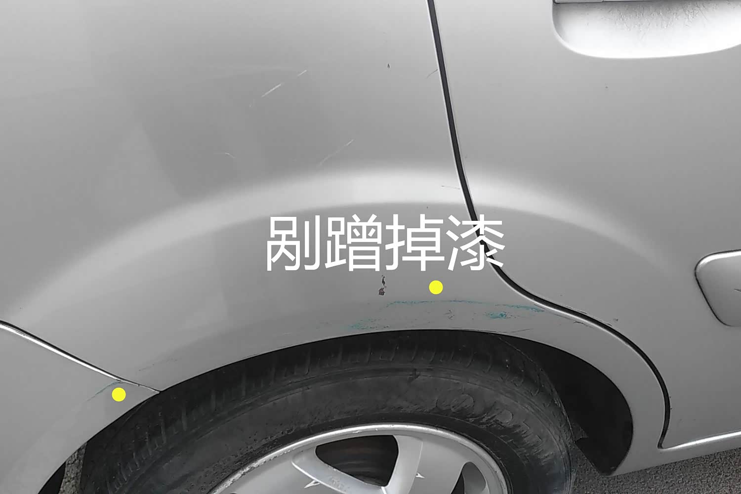 虽然这车比较小,可能车主比较喜欢走窄路到处都是剐蹭痕迹,这里是右后的翼子板下部,剐蹭痕迹明显并且已经掉漆。