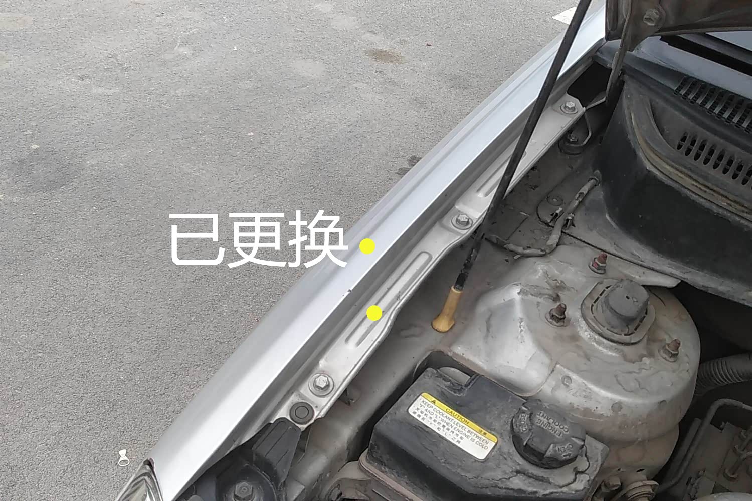这里的水箱框架是塑料制品,如果受力较大基本无法修复,只能更换,不过该车的这里仅仅是拆卸,并没有更换,所以影响不大。