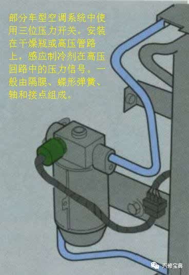 安装在蒸发箱壳体侧面。其感温头处于蒸发箱散热片中,感温头内封装制冷剂,同时有一毛细管通向感温包。通过感温包的热胀冷缩控制其触点的开关与闭合,进而控制压缩机的结合或断开,防止蒸发箱结霜。正常情况下,该传感器电阻/电压随温度的升高而逐渐减小。