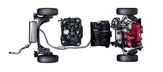 由于混动加持,起步动力加速出色,三种加速模式切换顺畅。在起步及低车速巡航时,启动“EV”模式,电池会向行驶用电机供应电量,驱动车辆前行,安静无声。在需要加速时,启用“混合动力行驶模式”由发动机驱动发电,用发电机发电,从而驱动车辆前行。高速巡航时,启用:“发动行驶模式”直接连接离合器,发动机的动力直接传输至车轮推动前行。电机在刚开始运转的瞬间即开始产生最大扭矩,车辆处于D档时具备更精准的加速响应,也更容易操作,处于S档,则拥有更轻快以及运动特性。
