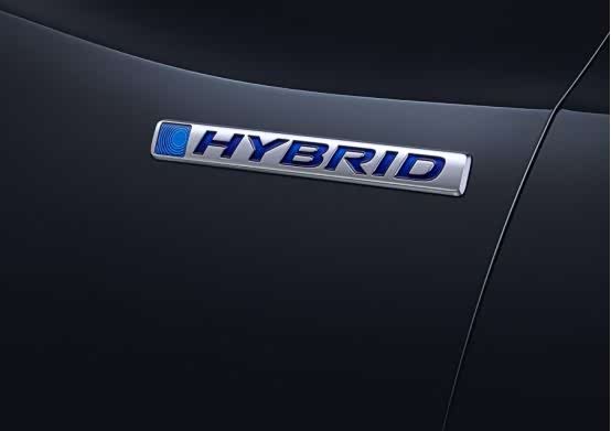 在A柱下方有明显的HYBRID混动专属标识,刀锋般的立体浮雕双腰线,以及17寸多幅轮毂的设计更加凸显了整体的运动感。