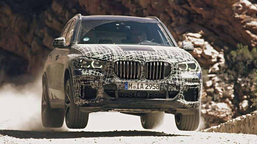 由于配备了越野套装的新X5具备触地检测功能,当车辆行驶在足够崎岖的路面时会出现单个甚至两个轮胎翘起无法触地的情况(交叉轴),这时悬挂会自动伸长直至轮胎接触地面或者达到最大行程。