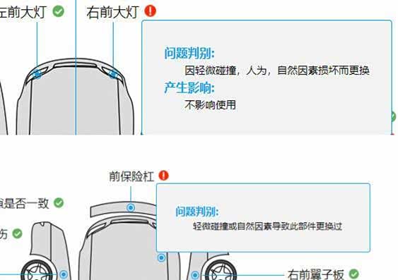 检测外观时就发现前保险杠有拆卸更换的痕迹,接着又发现右前大灯生产日期与车辆出厂日期不相符,明显的孩子比妈大现象,不对是这车是大灯的后妈,我也整不明白了,反正车灯就是后期更换的,综合判断车辆前部肯定有事故。