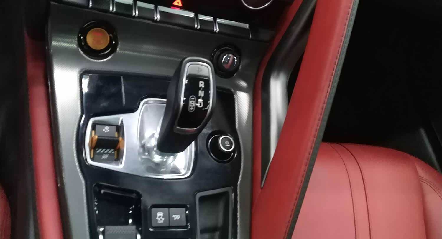 内饰功能按键、中控电子系统、前后方车灯都没问题,一看换挡杆,就怀疑这是假捷豹吧,大家都知道,捷豹路虎都是隐藏式的换挡旋钮,但是捷豹路虎的运动车型现在都回归到这种传统换挡杆,比如路虎揽胜的运动版,还有今天这台F—type上也是这样,毕竟性能跑车,装个旋钮也挺别扭的。