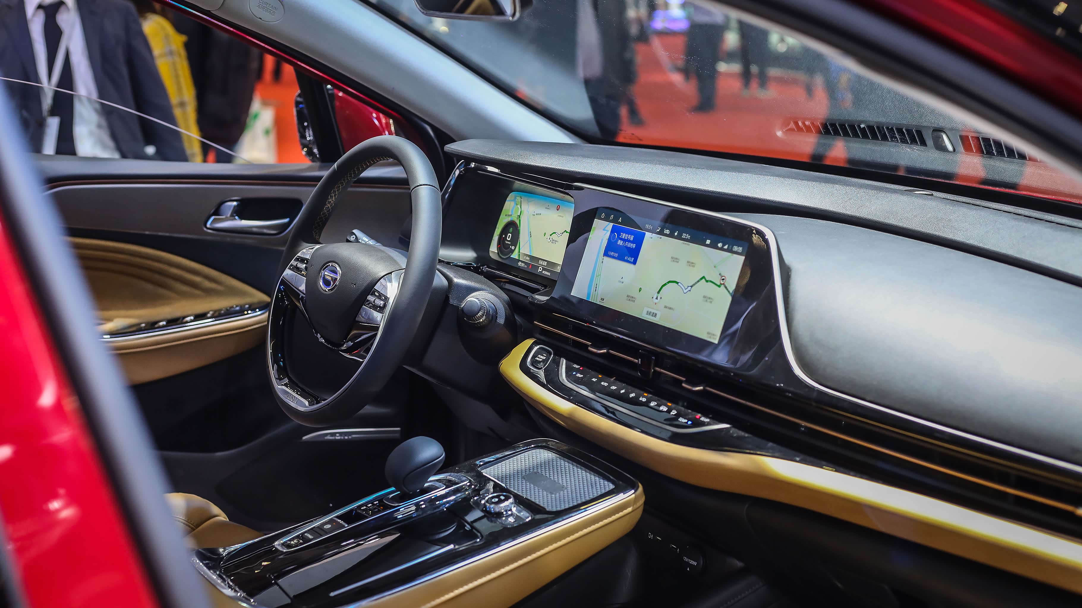 内饰方面,Aion S也同样以简洁、科技的风格为主,两块尺寸不小的液晶屏幕取代了大面积的物理按键,在常用的舒适功能上给用户保留了一组小的带有指示灯的物理触摸式按键。除此以外车内大面积采用皮质包裹,中控台上方大面的区域采用软性材料包裹,在车门上采用翻毛皮材质包裹,方向盘采用镀铬的按钮,整个车内氛围比较显档次。
