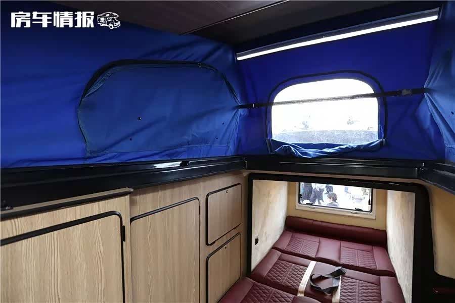 在后拓展开启以后,沙发座椅可以拼接为一张面积超大的双人床铺,不会有拥挤的感觉,在加上顶部休息区车内可以满足4人睡眠需求。