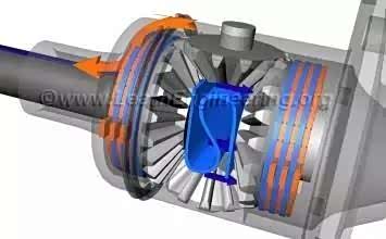 而在转弯时,限滑差速器可以充当普通差速器。此时锥型齿分离作用产生的轴向分力不算太大,所以离合器中的摩擦片可以轻松地克服摩擦阻力,从而产生彼此间的滑动,于是左右车轮之间像开放式差速器那样可以保持一定的转速差。