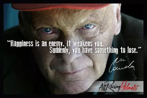 幸福是最大的敌人,它让你软弱,让你心生怀疑。突然间你就有了放不下的事——尼基·劳达。