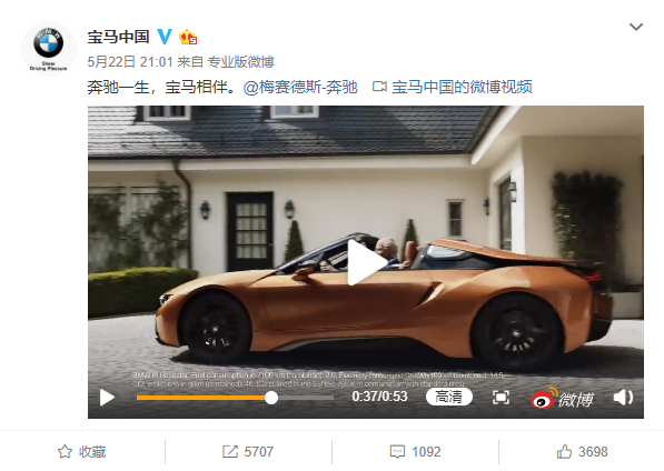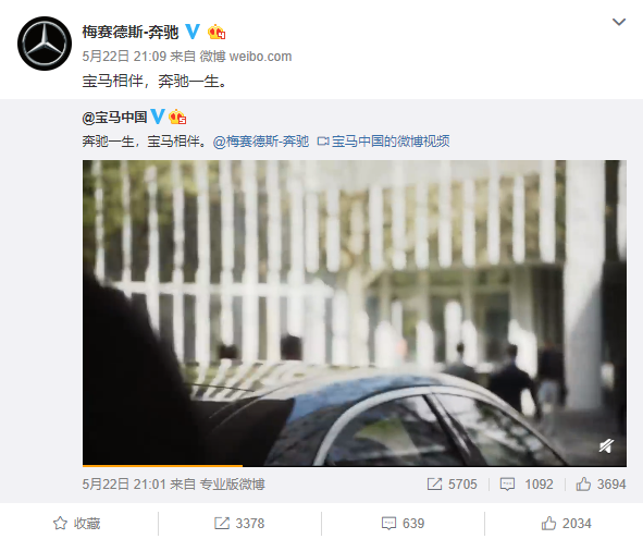 当然调侃归调侃,奔驰和宝马还是衷心的感谢了对手,宝马中国发了一条微博,附言“奔驰一生,宝马相伴。”,梅赛德斯-奔驰转发并附言“宝马相伴,奔驰一生。”可见奔驰宝马真是一对“欢喜冤家”!