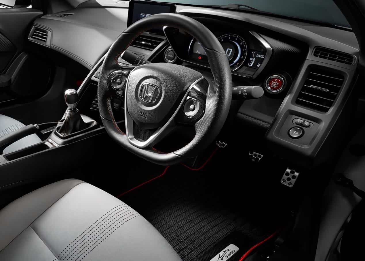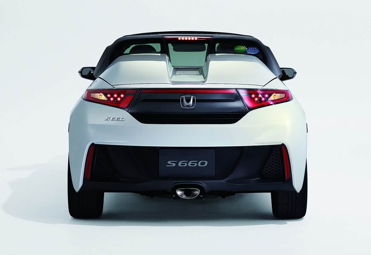 关键点来了,本田S660的无框车门是一款拉风的跑车必备神器。如果说本田S660前脸已经足够帅气的话,那尾部的设计只能用惊艳来形容了,本田S660尾部气场一点也不输于那些真正的跑车。尾灯也采用了LED光源,后方扰流板能在车速达到70km/h时自动升起,当车速降到35km/h后又会自动收回,此外扰流板还能通过中控台的按键进行升降。本田的设计师用向两侧延伸的线条来突出宽体的感觉,虽然只有0.66L的排量,但是一根中出的排气一点也不低调。这个设计可以说是现在的“神车思域”如出一辙。