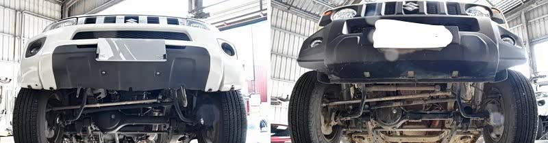 入手铃木吉姆尼虽拥有征服大自然的入场卷,不过想在极尽享受爬岩、溯溪乐趣之后还能全身而退的话,底盘再加装厚金属材质的下护板,绝对是不可忽略的车辆升级。最接近地面且较脆弱的避震器下座、纵向连杆的“关刀”护板是基础强化,而变速箱、加力箱、水箱、油箱护板,甚至前后保杆下护板则算是重度升级,一次全升级当然是明智之举,不过会大幅增加车重,建议车主先做衡量再下手…..