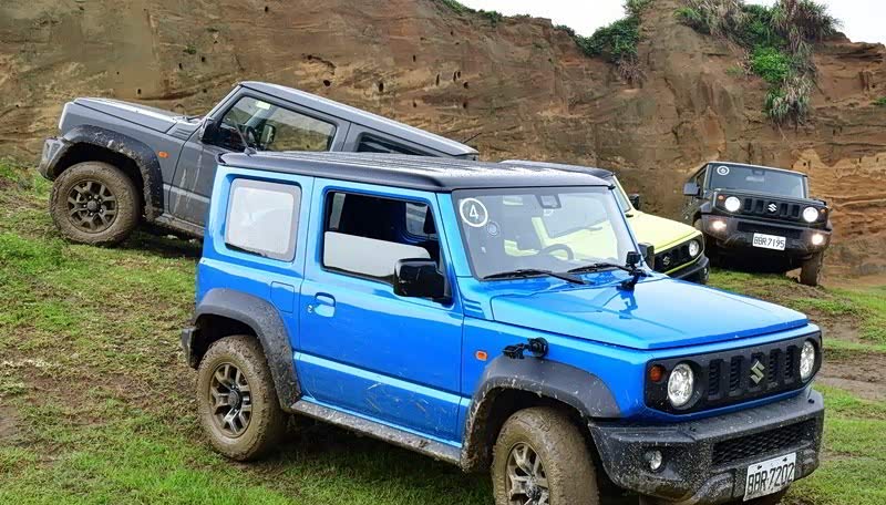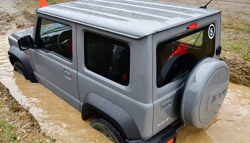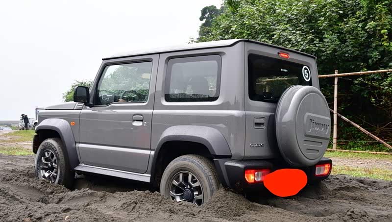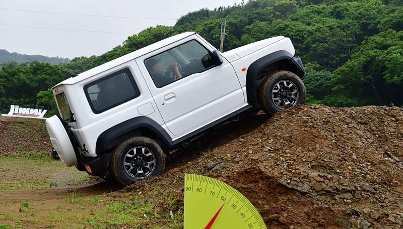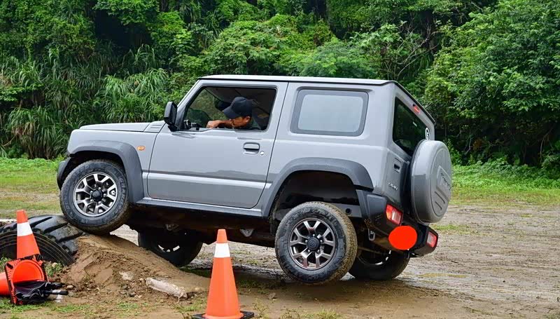 至于铃木吉姆尼强项的越野路面测试,归功于底盘、车体刚性强化,吉姆尼Mk4处于车身单边“孤轮”的超倾斜状态,非但没出现一般金属扭曲的异常声响,后门还可进行正常开合,完全不像一些SUV车款会出现扭曲挤压的窘境。因4L驾驶模式新增添电子式LSD,当吉姆尼Mk4行经松软沙土路面,致使同车轴的左右两轮出现明显轮转速差时,不会像Mk3前代版纯粹只将输出力道传到空转轮,而是会让有抓地力的一轮仍有输出动力,即使限滑比感觉不像一般改装版LSD或Air Lock那般明显,但搭配放大两倍的扭力输出足可上演轻松脱困的戏码,当然也帮车主省却一笔改装LSD与绞盘的费用。这套吉姆尼Mk4配置的电子式LSD,其实和“奔驰G”的电控LED型式不同,以铃木官方信息来看,本身除了通过ESP、ABS电子系统将空转轮锁定静止免得浪费动力之外,有抓地力的另一轮同时仍有相当程度的运转力道,如此可得知吉姆尼Mk4原厂差速器具备限滑功能,只是囿于本身车轻、扭力峰值也不大,即使本身限滑%不大而已,对于一般小玩的车主其实已足够。