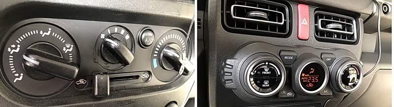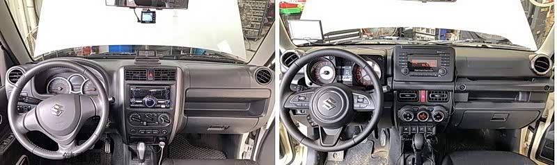 中空台采用可轻易判断车体是否歪斜的水平造型,其实在前世代的Mk3就已经有如此特色,只是Mk4设计来得更彻底一点。仪表板从前代椭圆变成方块型,更容易让驾驶者更判断车辆在崎岖路面的歪斜状态之外,仪表面板表配置金属发丝纹路同时固定螺丝还外露,加上中控台造型也明显方正化,粗犷阳刚味当然也明显浓烈。空调系统除了添加自动恒温系统,控制型式也从前代拨杆变成旋钮并附加液晶显示,大幅提升视觉质感、触感之外,呼应可显示即时车况的中置数字仪表,整体车内的科技味道增加。吉姆尼Mk4内饰用料,除了座椅采用容易清洗又有冬暖夏凉的织物材质之外,其余和前代一样都以塑料为主,但表面采用两种不同刻花纹路,肉眼感触当然也高级不少。