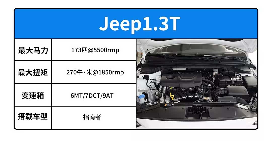 目前Jeep的主力机型,动力水平和油耗属于主流水平,如果购买指南者,还是建议选购1.3T的版本。