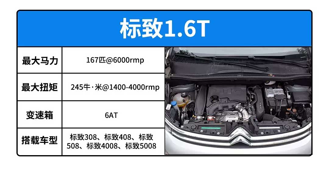 这是PSA集团和宝马集团十几年前合作的产物,目前数据和动力在1.4T-1.6T这个范围里算中游水平,动力和平顺性表现一般。如果是购买508、4008这些车型,1.6T会是最好的选择。