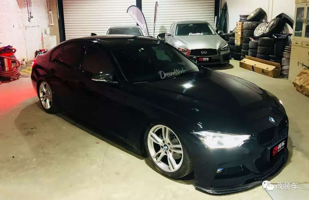 在2018年底购买3系,其实可以参考的案例就很多了。所以车主一步到位,既然自己喜欢爱车趴在地上的那种感觉,那就直接上气动。当刚装好避震看到车子降下来的时候,那一瞬间就把他给迷住了。