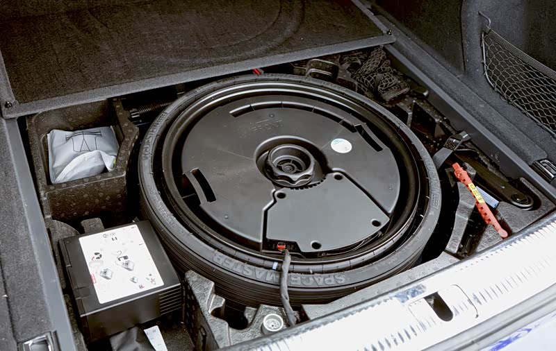 在尾厢盖板下方,配置了充气式的备胎用以减小占用体积,配置了便利的充气设备,还有很完善的安全包,里面包含一件安全警示衣,显得很贴心。