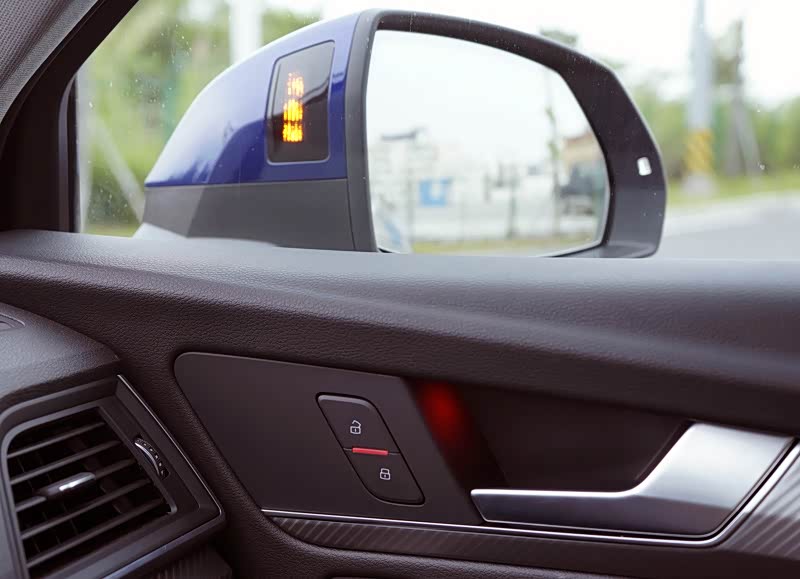 Q5L全系标配主动刹车功能,同时还可以对主动刹车功能的预警进行设置,分别三档调节。另外,在盲区监测方面,除外后视镜的提示,车门内侧也加装了橙色的警示灯,这样提醒显得更加全面。