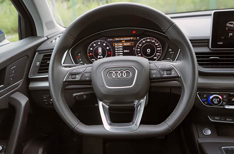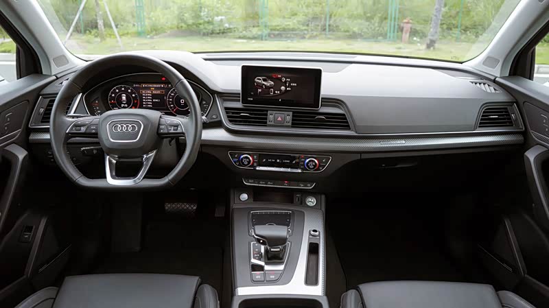 车厢内部的整体布局依然保留了很多奥迪的传统,比如悬浮式的中控屏、平底的方向盘、空调控制区的红蓝配色等,看起来很有亲切感。车厢的做工及用料很不错,扶手以及按键,摸起来很舒服,中控台与腿部接触的地方采用了软质材料包裹,不会因为经常踩油门使膝盖不舒服。车内整体的质感依然是比较高档。