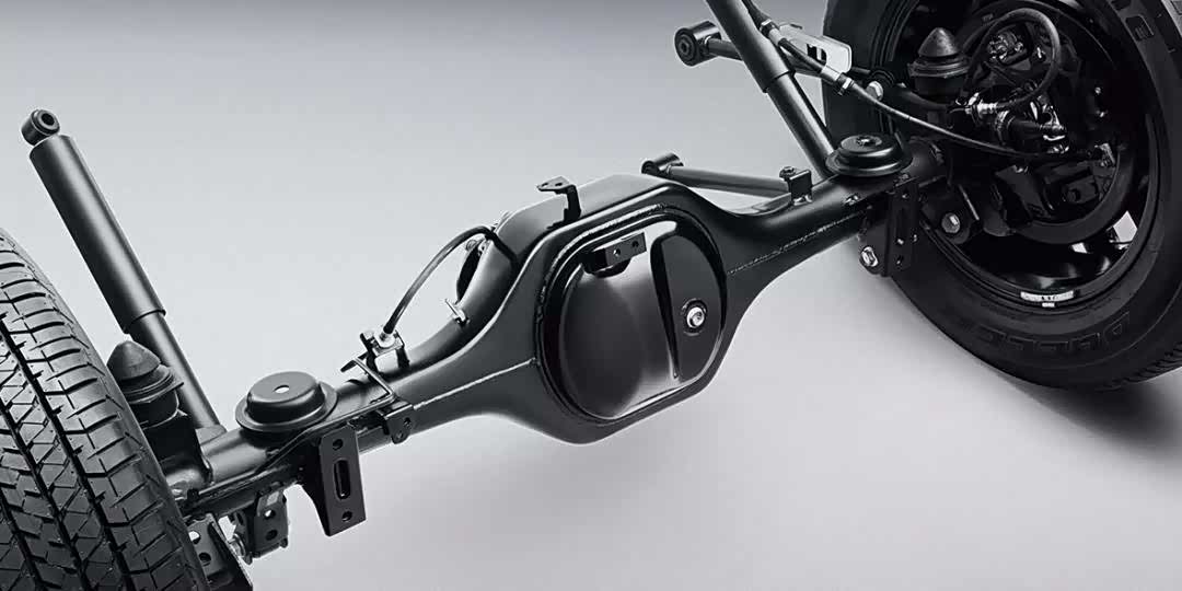 途达采用非承载式车身,和机械牙嵌式后桥差速锁,其作用可以将没有受力的轮子扭矩,转移到另一侧轮子上。