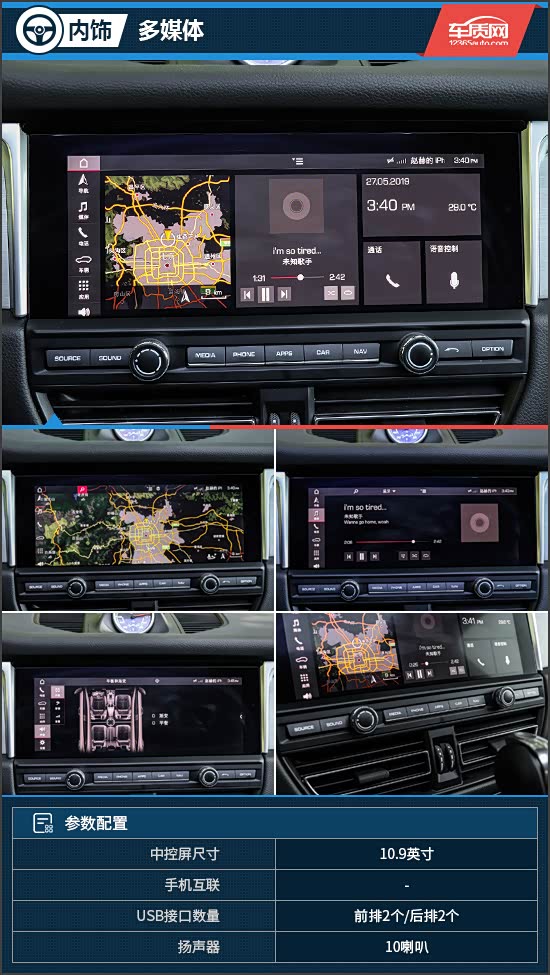 中控屏是此次改款重点,新车由老款的7英寸升级至10.9英寸,并且内部系统也进行更新。上手操作后,该系统反应非常迅速,没有卡顿现象,同时,按下时虽然没有物理反馈,但有提示音。中控屏的下方配有一排快捷键,驾驶者也可通过物理按键进行盲操。此外,该试驾车提供苹果CarPlay选装,价格3800元,如果你是个音乐发烧友,你也可以选装BOSE音响,价格14600元,如果你是重度发烧友,厂家还提供柏林之声,58600元,价格是不是非常感人?