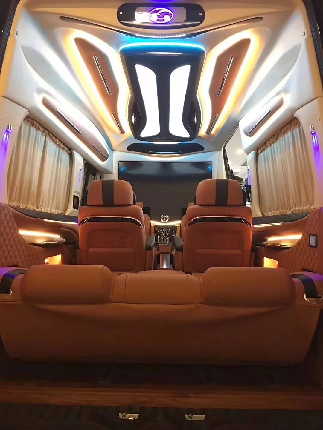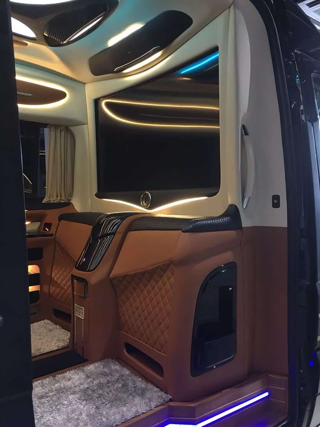 斯宾特房车贵宾舱前排座椅配备总裁级航空座椅,完美兼顾人体工学设计与视觉审美感受,整个座椅对腰部以及乘客身体两侧支撑的力道也是恰到好处,功能方面支持旋转、按摩、通风加热等八项舒适性调节,你都可以通过座椅扶手一侧的面板自由调节。后排沙发座椅可以一键平躺成双人沙发床,中排与前排之间可以添加桌板,成为移动办公室。